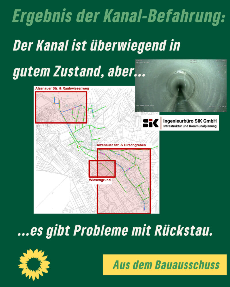 Zur Klärung, ob eine einfache Erneuerung der obersten Asphaltschicht ausreichend ist oder ob ein umfassenderer Eingriff notwendig wird, wurde das Ingenieurbüro SiK GmbH aus Aschaffenburg beauftragt, insbesondere den Zustand des Kanalsystems zu überprüfen.